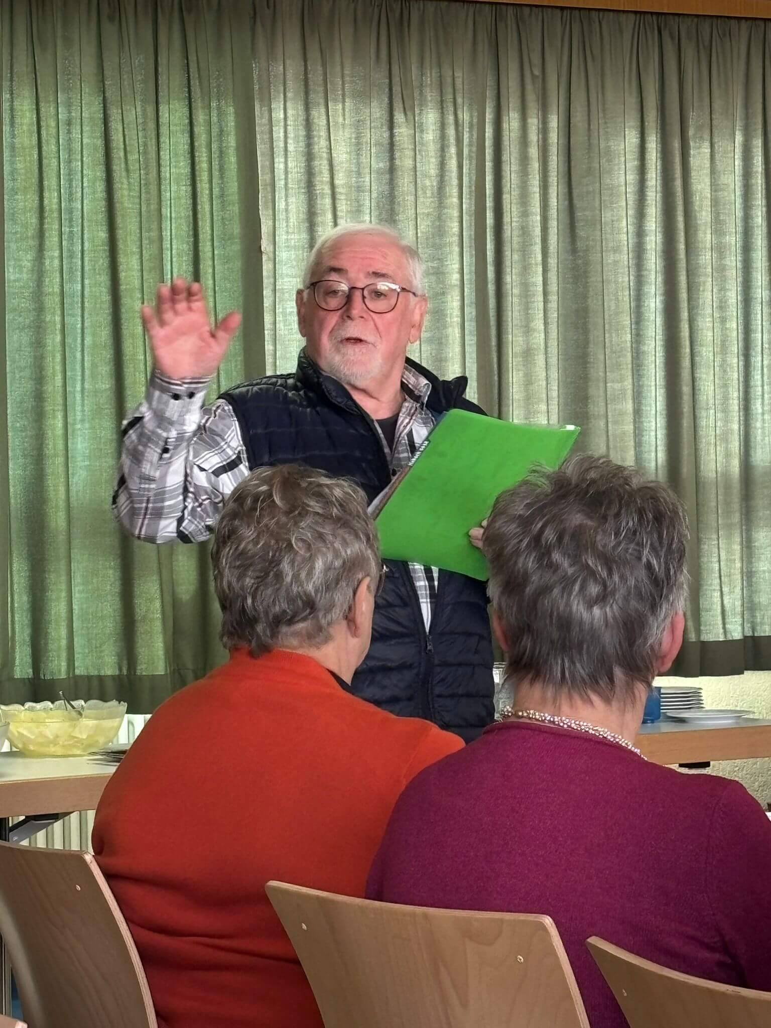 Ortsvorsteher Peter Dörr führte durch das Programm und begrüßte die Gäste.6 Für beste Unterhaltung sorgte zudem eine humoristische Einlage von Pfarrer Kneip alias Arno Meiser, der mit viel Witz und Feingefühl für zahlreiche Lacher im Publikum sorgte.