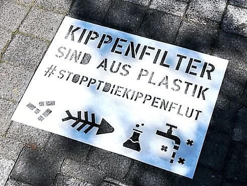 An alle Raucherinnen und Raucher wurden im Rahmen der Aktion Taschenaschenbecher verteilt. Zur Sensibilisierung der Passanten wurde mit Schablonen auf dem Pflaster auf einen Teil des Problems mit den Kippen in der Umwelt aufmerksam gemacht.