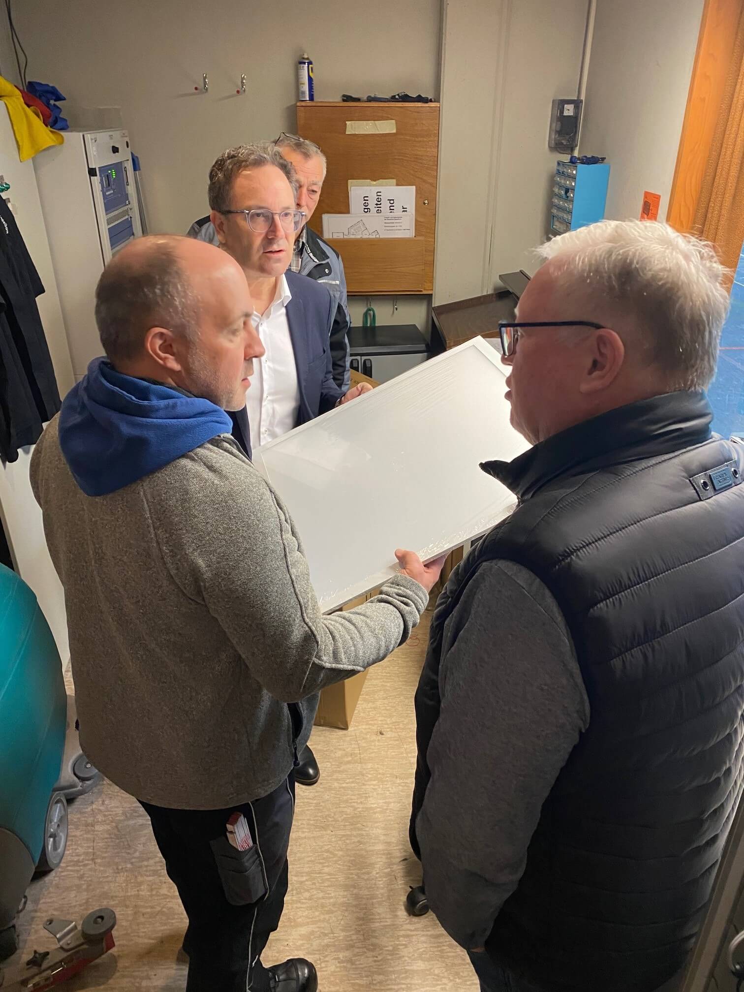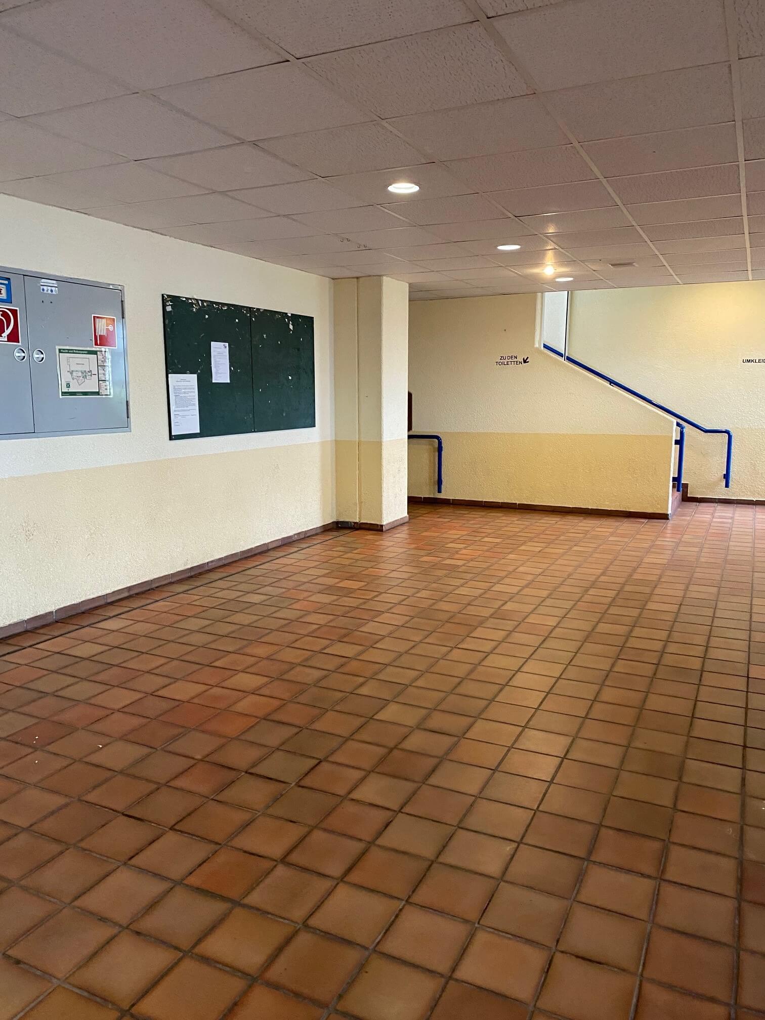 Die Arbeiten beginnen im April und werden voraussichtlich bis Mitte Juli 2026 andauern. Um den laufenden Betrieb so wenig wie möglich zu beeinträchtigen, erfolgt die Umsetzung in mehreren kleineren Etappen. Die Durchführung übernimmt unsere Technische Hausverwaltung. Im Zuge der Renovierung werden im Eingangsbereich, in der Garderobe sowie im Foyer umfangreiche Malerarbeiten durchgeführt. Die Räume erhalten dabei eine neue, frische Farbgestaltung. Darüber hinaus werden die Deckenplatten in diesen Bereichen erneuert. Ein weiterer wichtiger Bestandteil der Maßnahme ist die Modernisierung der Beleuchtung: Die bestehenden Lampen werden durch energieeffiziente LED-Technik ersetzt. Auch die Ausstattung wird verbessert – so erhält die Garderobe neue, rollbare Garderobenständer, die künftig mehr Flexibilität bieten. Ergänzend dazu werden neue Beschilderungen angebracht und die Infotafeln für unsere Vereine sowie für die Gemeinde erneuert, sodass sich Besucherinnen und Besucher künftig noch besser orientieren können.
