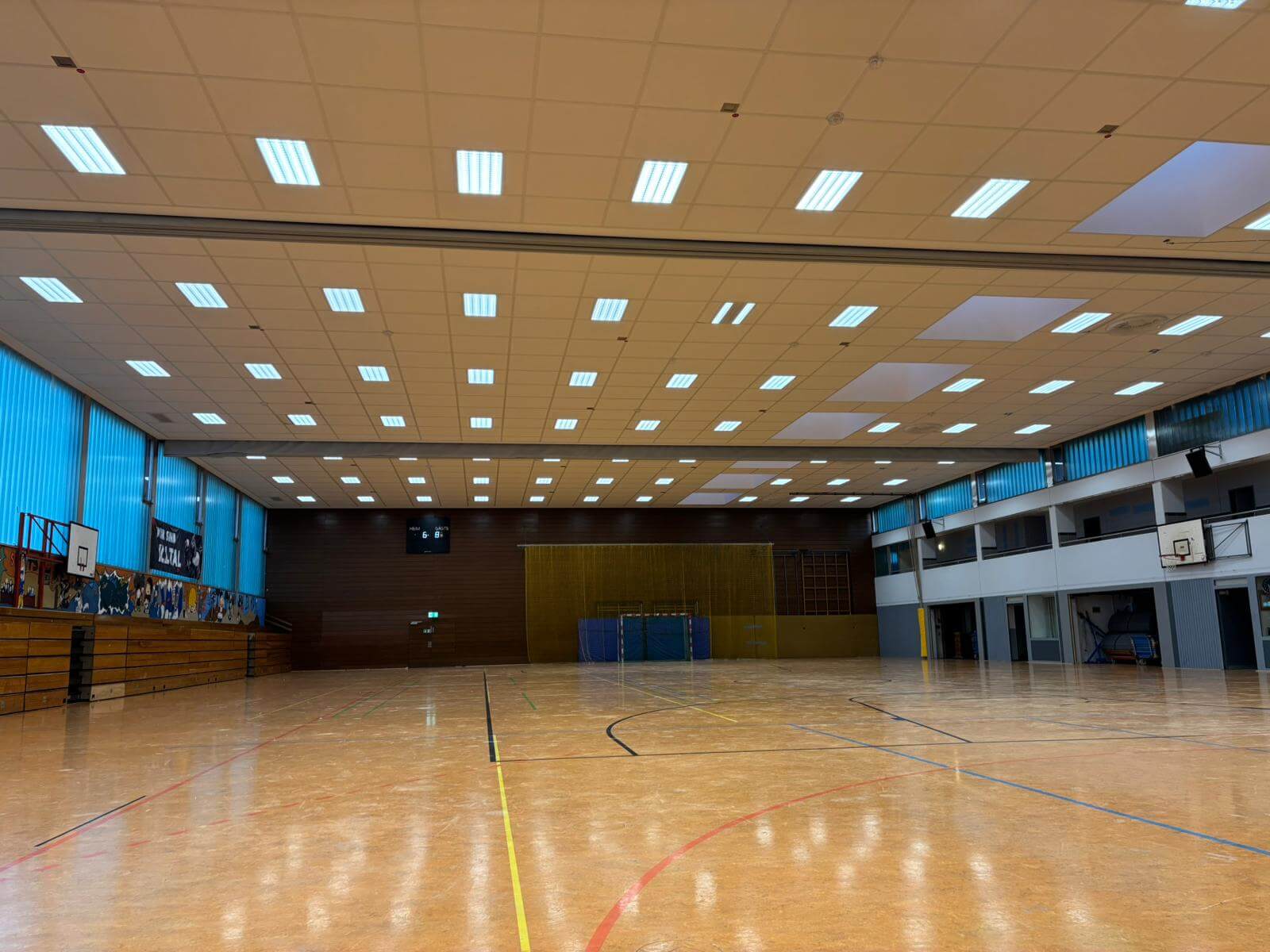 Mit der neuen Unterdecke haben wir die Hellberghalle technisch wie sicherheitstechnisch auf den neuesten Stand gebracht. Die alte Konstruktion wurde vollständig entfernt und durch eine moderne, feuerbeständige und korrosionsgeschützte Lösung ersetzt. Ergänzt wurde dies durch eine neue, energieeffiziente Beleuchtung, die sowohl den Sport- als auch den Veranstaltungsbetrieb spürbar verbessert.