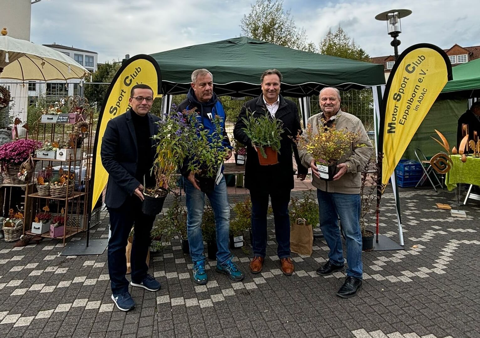 Ein weiteres Highlight des Tages war die besondere Aktion des MSC Eppelborn. Der Motorsport Club Eppelborn verschenkte insektenfreundliche Sträucher als „ökologischen Ausgleich“ für die Oldtimer-Rallye, die Anfang September stattgefunden hatte. MdL Roland Theis, der Vorsitzende des MSC Eppelborn Frank Heinrich, Bürgermeister Andreas Feld sowie der Vorsitzende des Gewerbevereins Günter Schmitt haben gemeinsam die Sträucher verteilt. Auch Wolfgang Förster, Staatssekretär der Finanzen und für Wissenschaft, schaute auf unserem MarktGenuss vorbei.