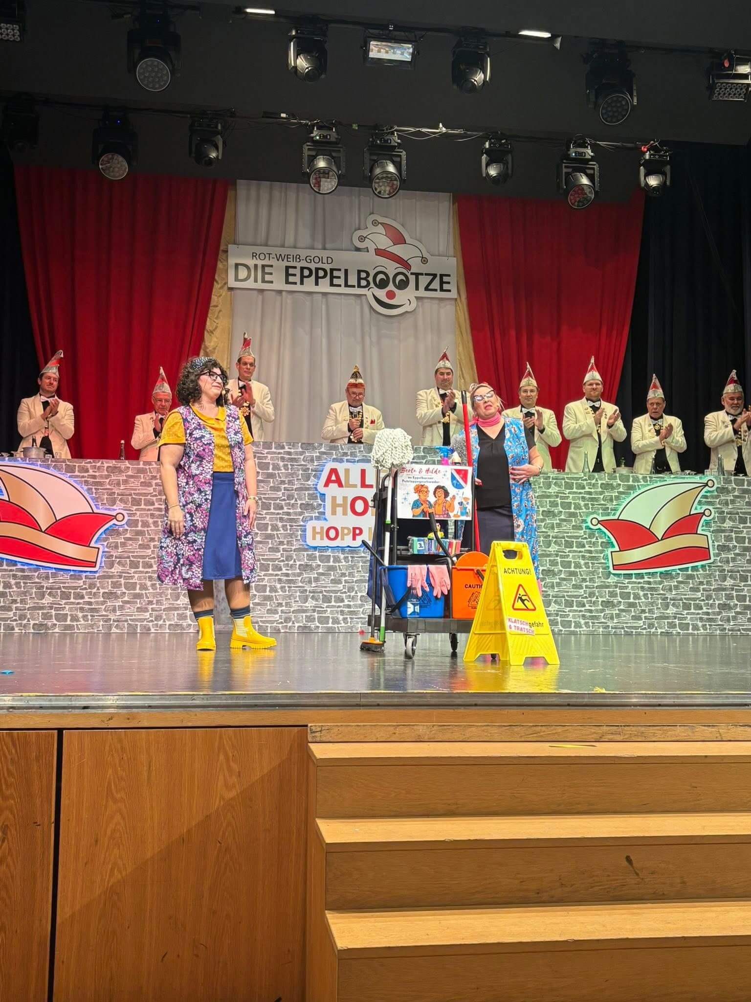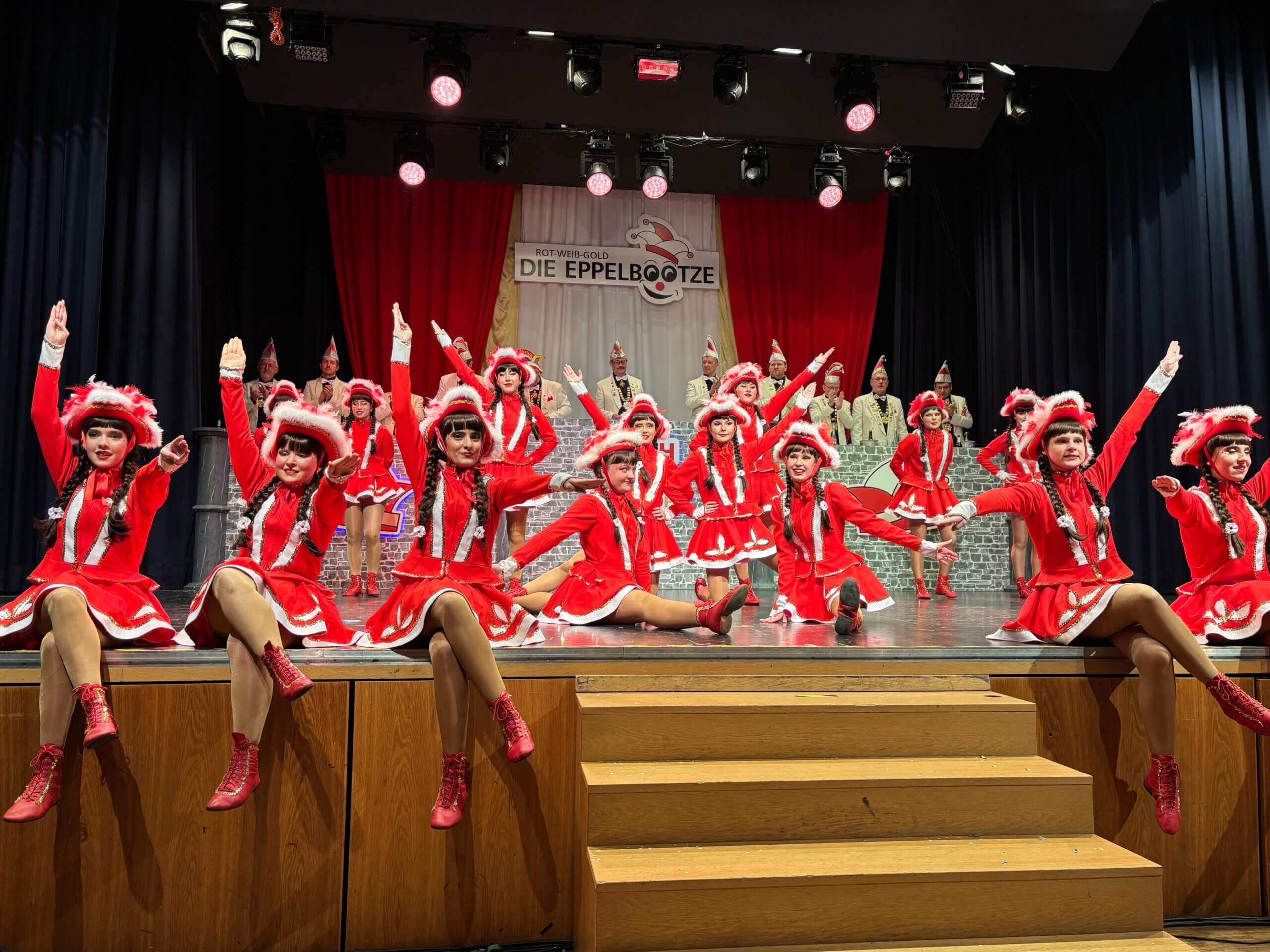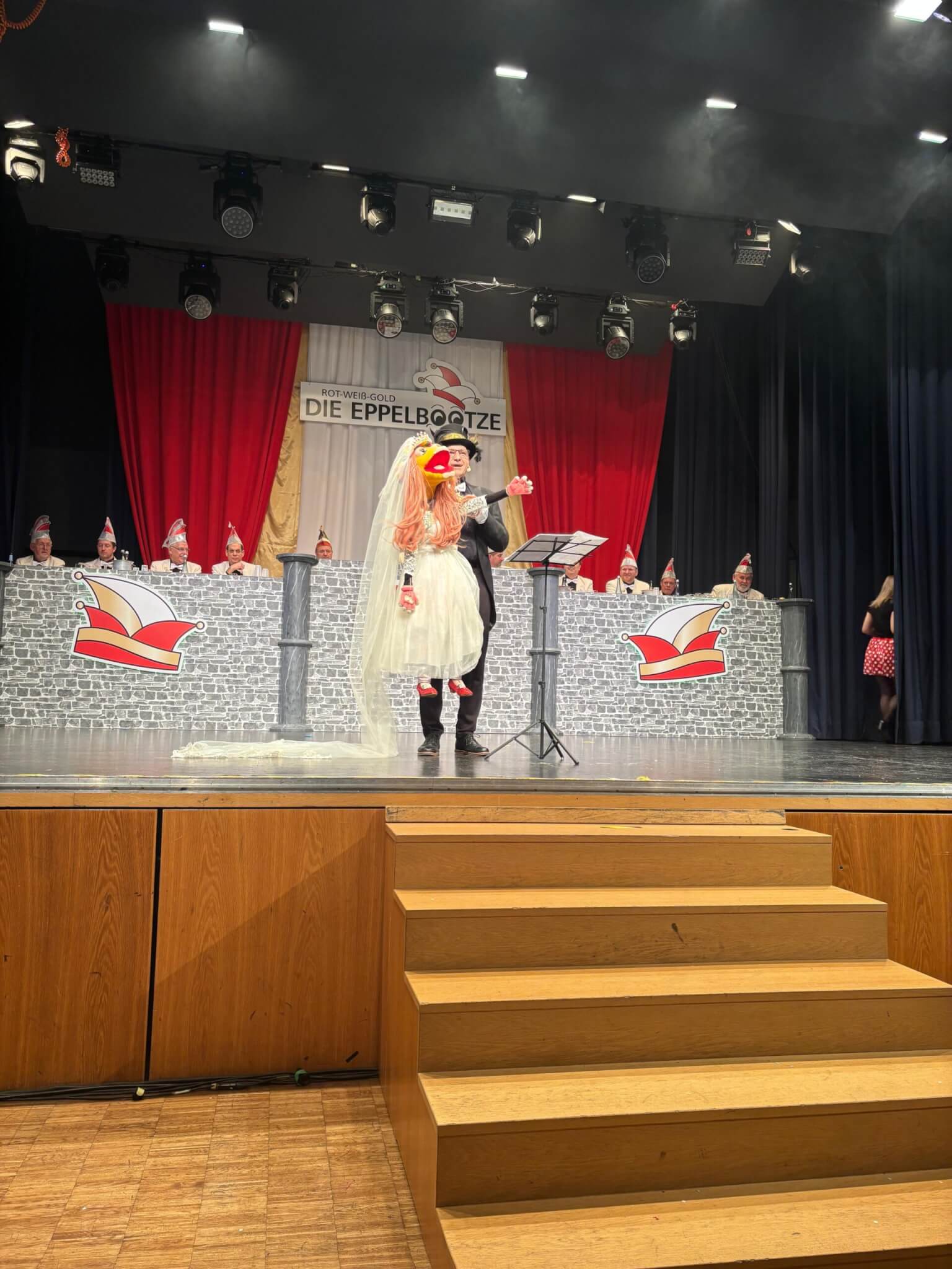 Mit einer rundum gelungenen Prunkkappensitzung ist der Karnevalsverein ROT-WEISS-GOLD „Die Eppelbootze“ am vergangenen Samstag in die heiße Phase der Session gestartet. Elferratspräsident Jörg Olliger begrüßte die Narren im Saal pünktlich um 19:11 Uhr und übergab anschließend das Zepter an Nicole Florek und Nikolaus Hesedenz, die mit ihrer unverwechselbaren, humorvollen Art souverän und unterhaltsam durch das Programm führten. Das Prinzenpaar der Eppelbootze, Prinzessin Maria-Francesca I. und Prinz Michael I., begrüßten mit Ihrer Rede ihrerseits das Eppelborner Publikum.