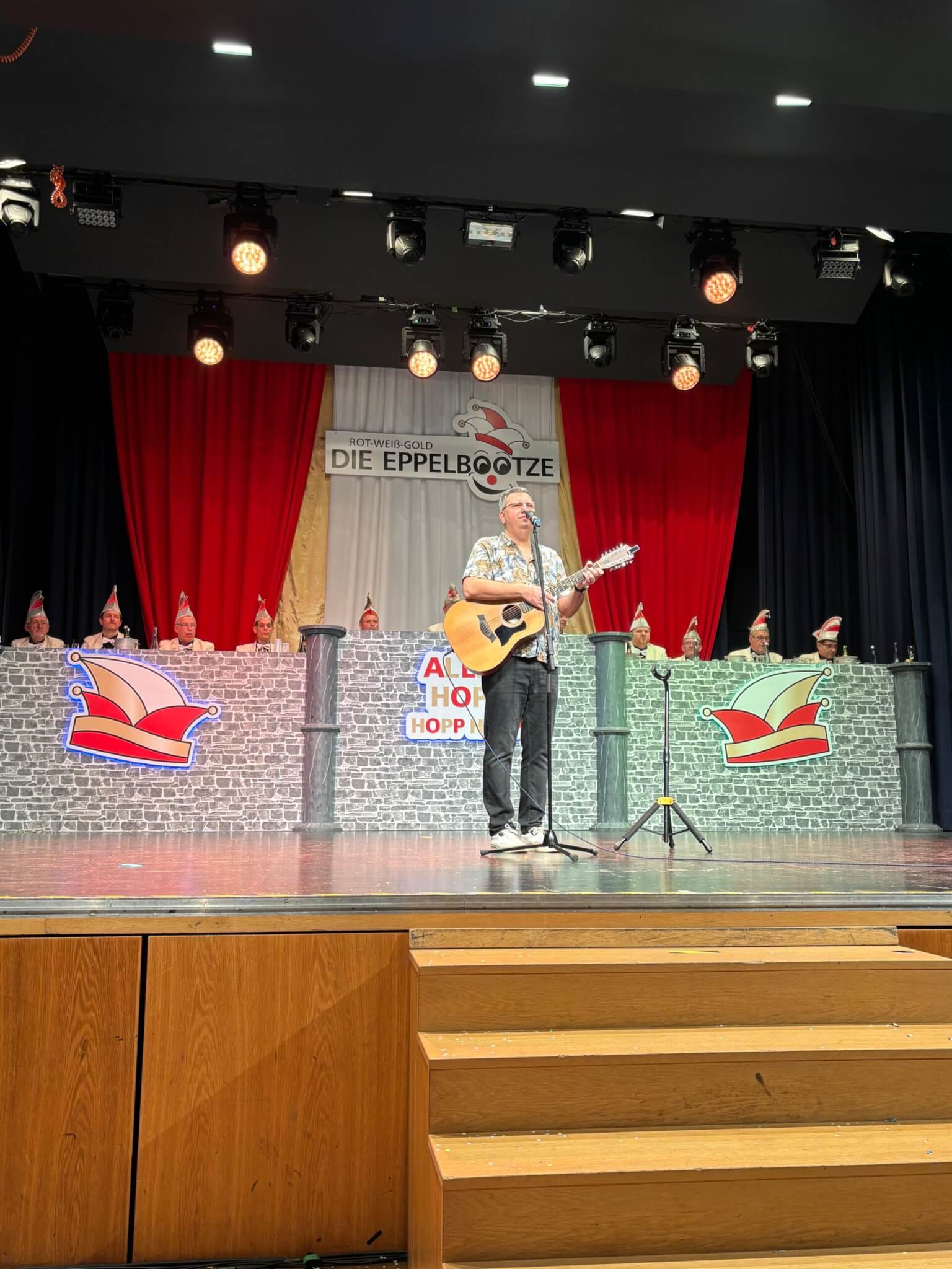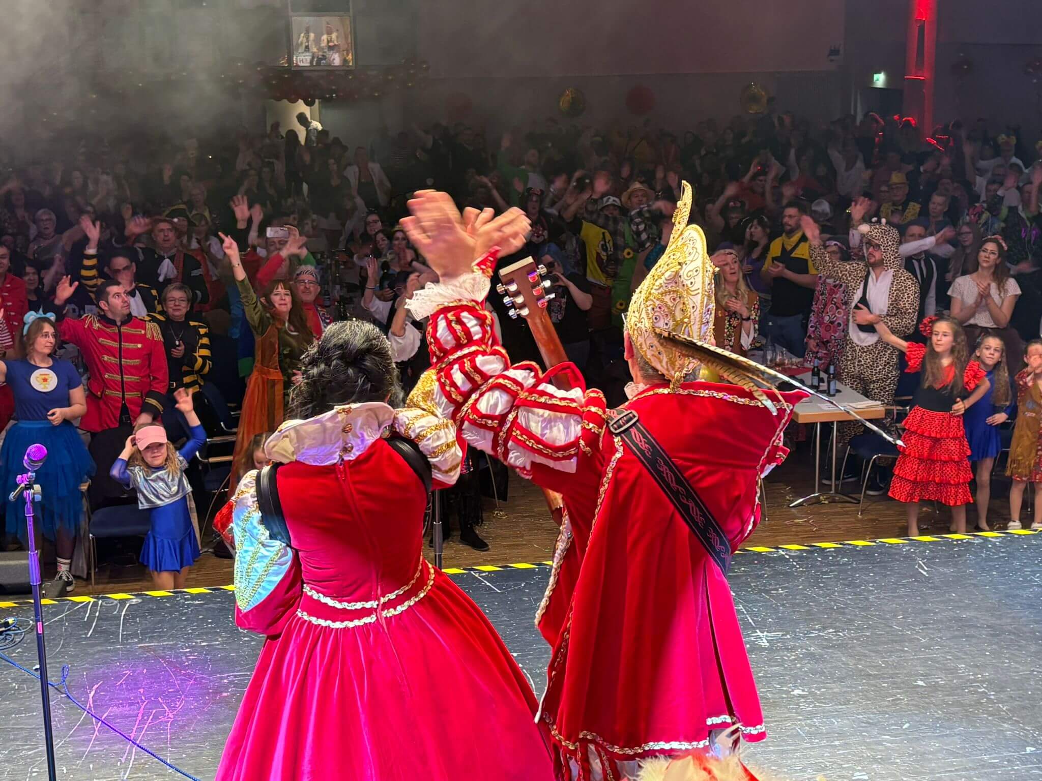 Musikalisch begleitet wurde der Abend von „28Viertel – Die 7er Besetzung“, die mit ihrer Live-Musik für den passenden Sound und zusätzliche Stimmung im Saal sorgten. Für einen ganz besonderen Moment sorgte dann auch noch das Eppelborner Prinzenpaar, als die beiden selbst zu Schifferklavier und Gitarre griffen und mit den beiden gespielten Liedern den gesamten Saal in ihren Bann zogen.
