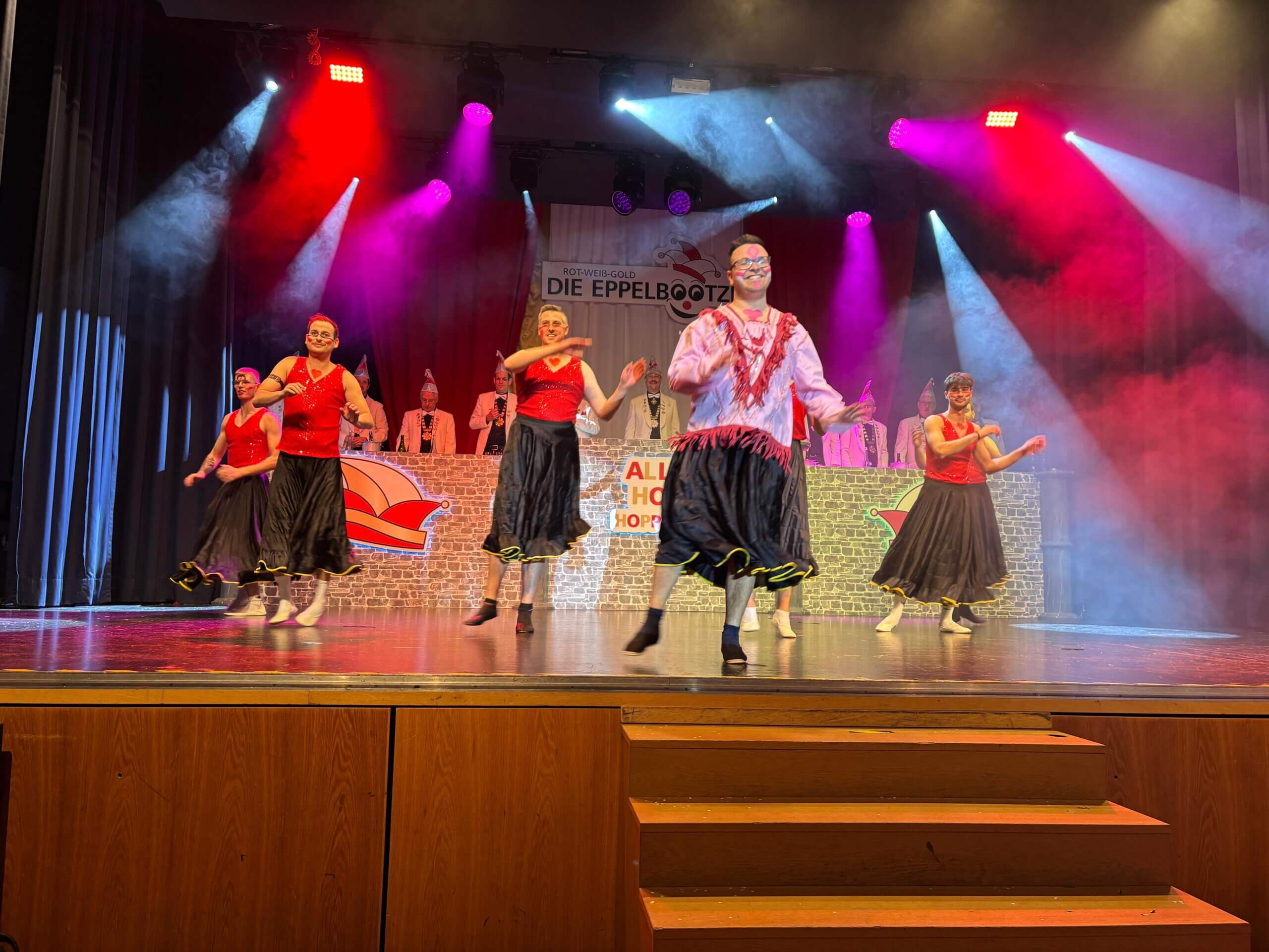 Ein abwechslungsreiches Programm, gespickt mit Büttenreden, die zum Lachen und Schunkeln einluden, sowie energiegeladene Tänze ließen den Abend im Flug vergehen. Die Minigarde nahm die Gäste mit auf eine Reise ins Paradies, die Junggarde, die Funkengarde und natürlich auch die Eppelborner Prinzengarde begeisterten mit ihren Gardetänzen. Darüber hinaus sorgten auch die Showtanzgruppen „ImPuls“ mit ihrem Flug durchs All, „One2Step“, die mit ihrem Disco-Medley die Bühne einnahmen , „Skillz2Move“, die nach kurzen Stromausfall mit ihren Lichteffekten den big Eppel wieder zum Leuchten brachten, die Männergarde sowie The Crutches mit abwechslungsreichen Choreografien sowie tollen Kostümen für beste Unterhaltung und immer wieder tosenden Applaus.